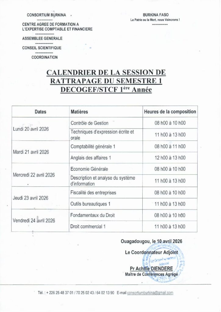 Calendrier de la session de rattrapage du semestre 1 DECOGEF/STCF 1ère année. Laisser un commentaire / Uncategorized / Par Congo.Salamata